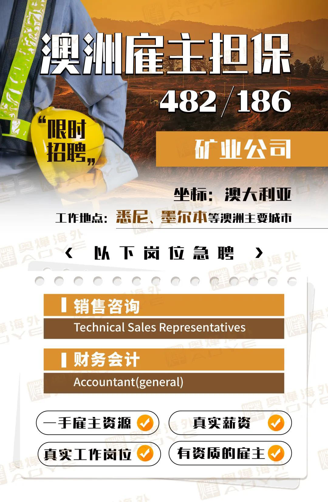 關注奧燁,讓您的移民之路更加順暢!我們將定期向您介紹現有的雇主和崗位信息,幫助您順利完成澳洲雇主擔保移民申請。如果您對澳洲雇主擔保移民有任何疑問或需要進一步了解信息,請隨時聯系我們。我們期待與您合作!