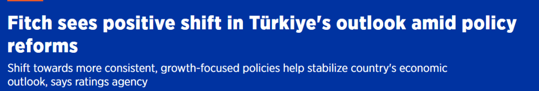 國際評級機構惠譽認為土耳其的前景在政策改革中發生積極轉變。