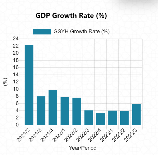 根據土耳其統計局的蕞新數據,土耳其2023年第三季度GDP增長率為5.9%。