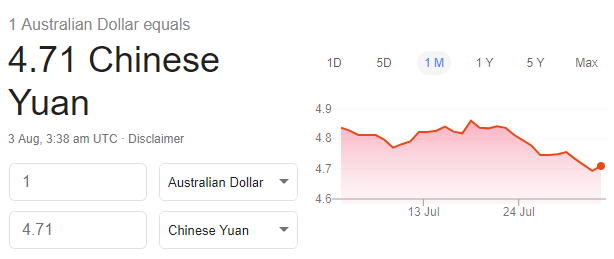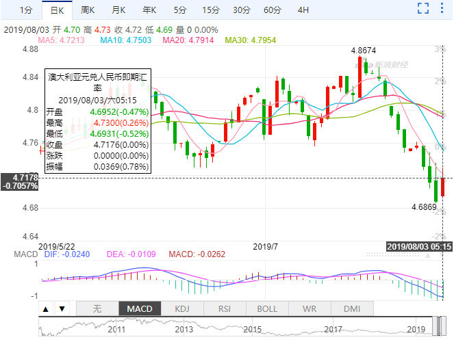 這兩天,澳幣匯率經歷了斷崖式下跌,8月1日晚至8月2日凌晨期間,從高點1:4.73跌至1:4.69。