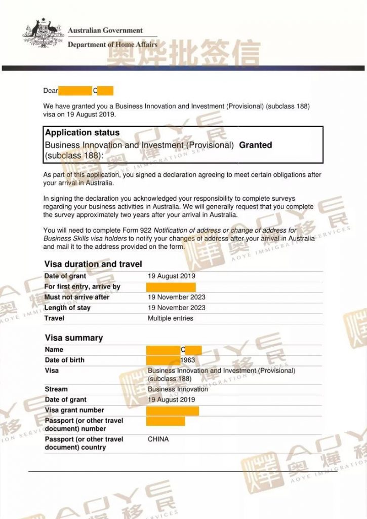 【2019.08.21奧燁批簽公布】恭喜四位澳洲移民客戶獲得喜訊!