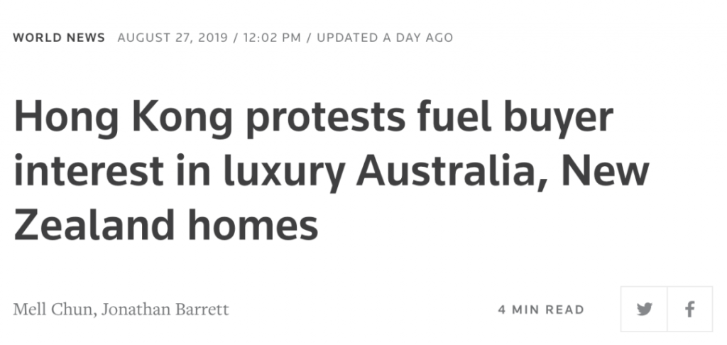 過去一個多月的抗議活動加速了香港富裕買家尋求新的住所和轉移資金的動力,他們或將選擇一個更加穩定的地方以備不時之需,而此地正是世界富豪扎堆地澳洲。