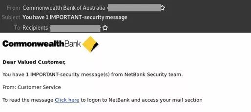 這封郵件的發件人署名為:澳大利亞聯邦銀行
