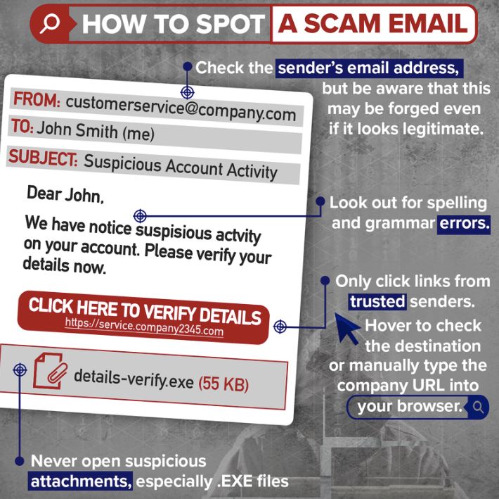 1. 檢查發送者的郵箱地址。不要只看發件人名字,因為發件人名字是可以編輯的,當然看發件人郵箱也不能完全保證,因為 有些騙子會注冊相似的郵箱來迷惑大家。