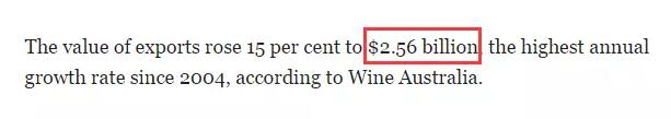2017年澳洲葡萄酒的世界出口總量較往年增長了15%,達到25.6億澳元。