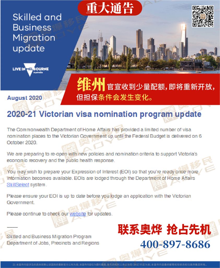 澳洲移民新政策:維州(墨爾本)即將開放少量名額!大家抓緊機會搶占先機!