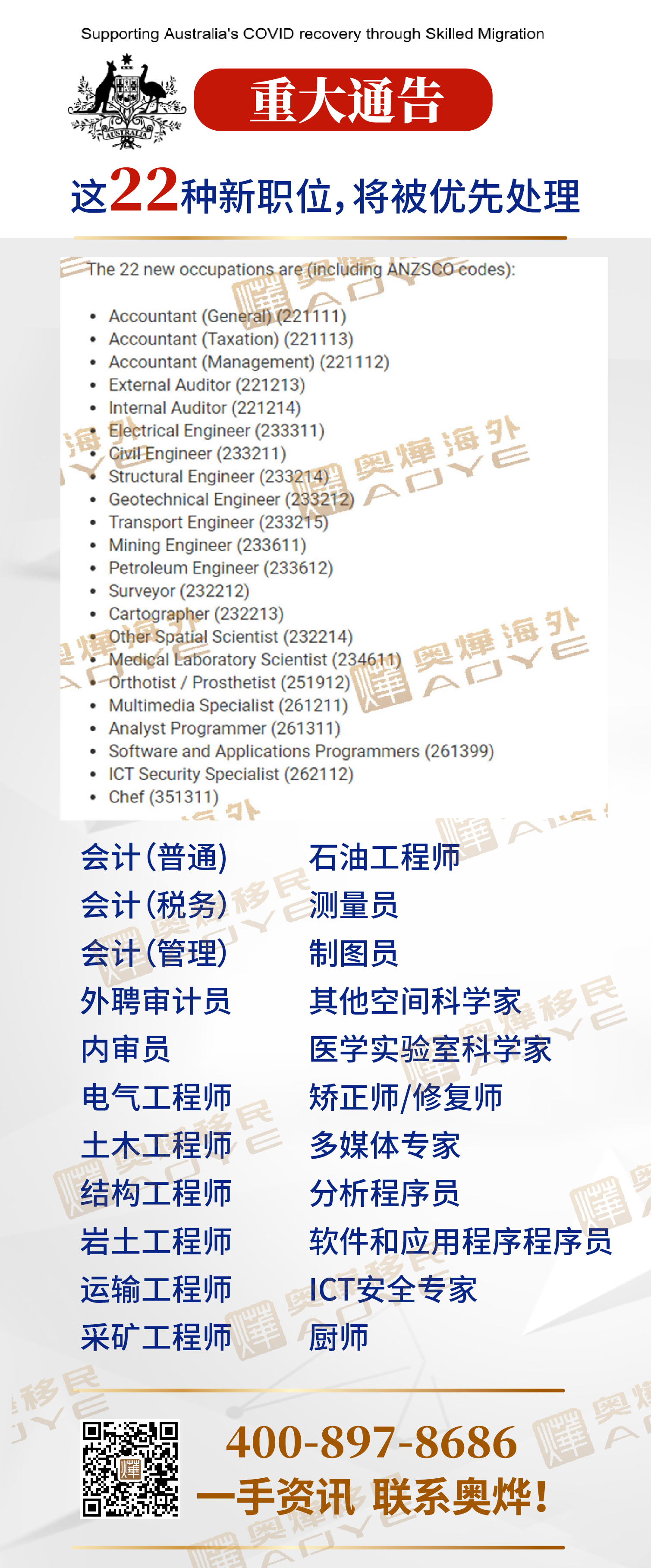 澳聯邦擴大移民技術職業清單,新增22個職位滿足快速獲簽證 !