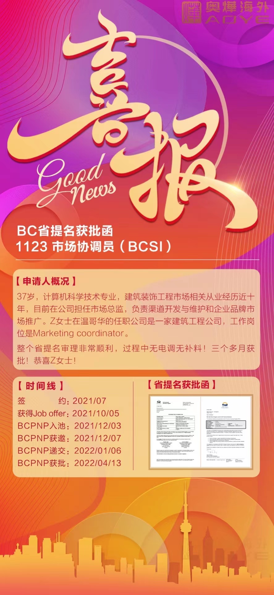 奧燁批簽:加拿大BC省提名獲批最新案例