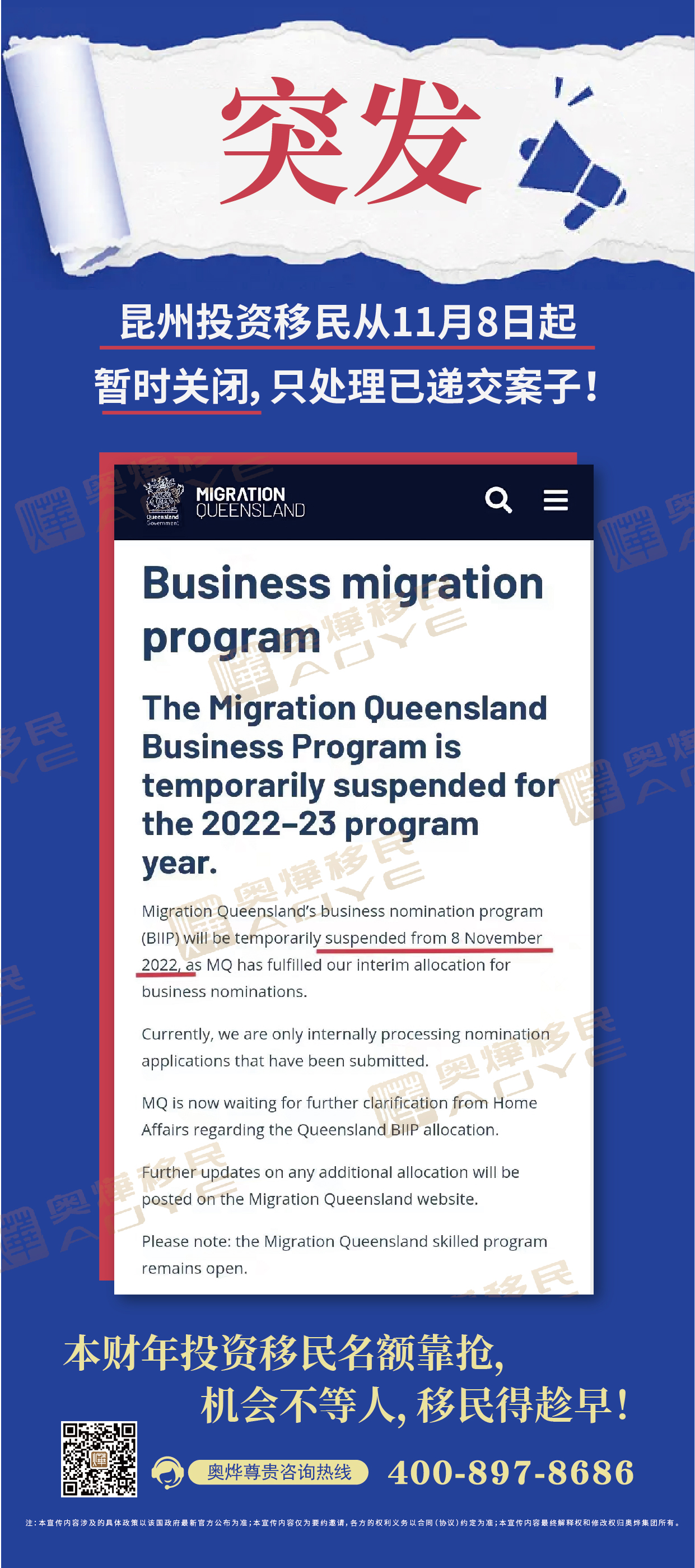 🇦🇺澳洲商業移民最新資訊: 昆州投資移民從11月8日起暫停,等待新的州擔保配額 本財年投資移民配額靠搶,機會越來越難得,且移且珍惜