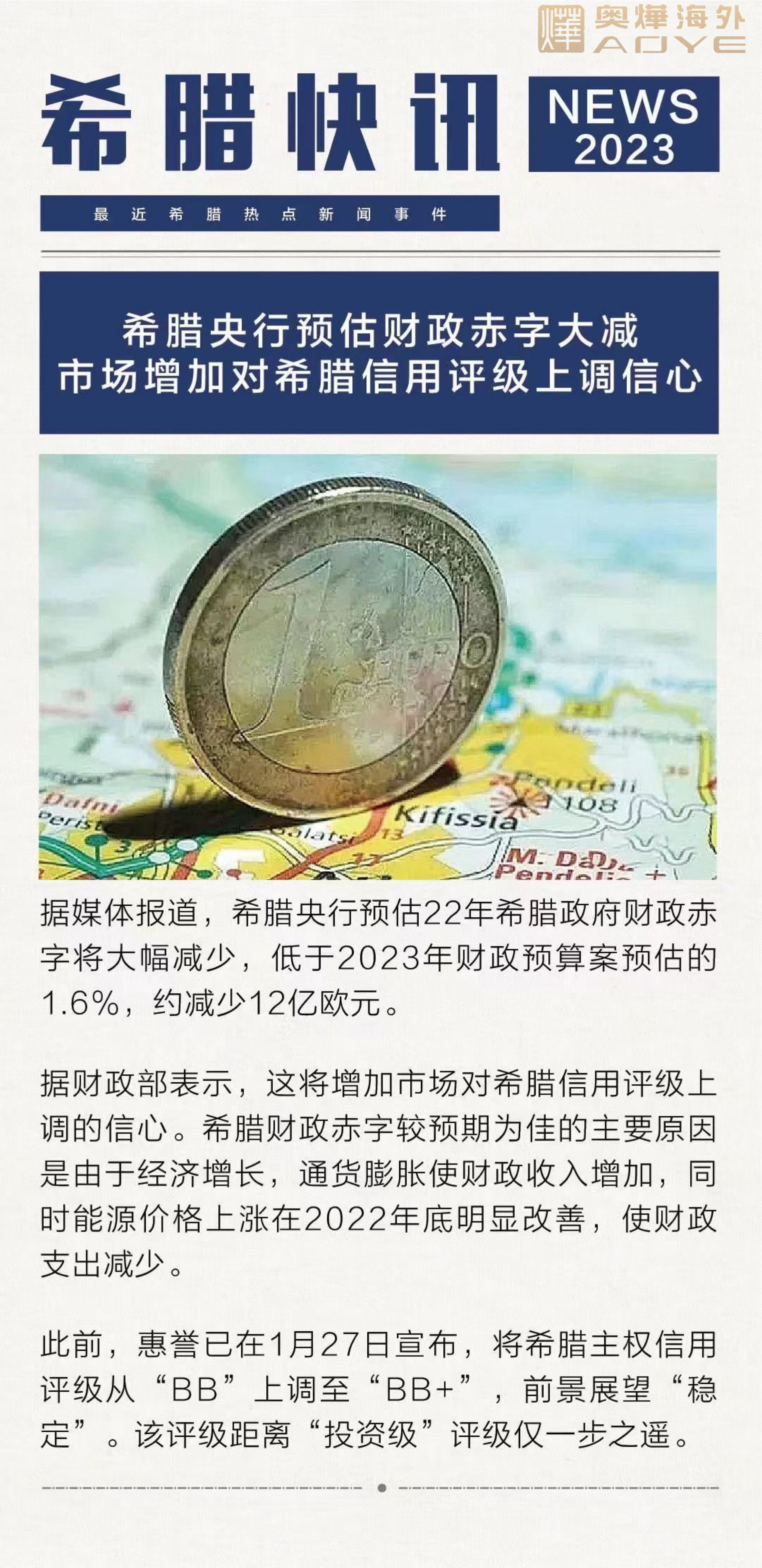 2023希臘快訊:央行預估財政赤字大減,市場增加對希臘信用評級上調信心