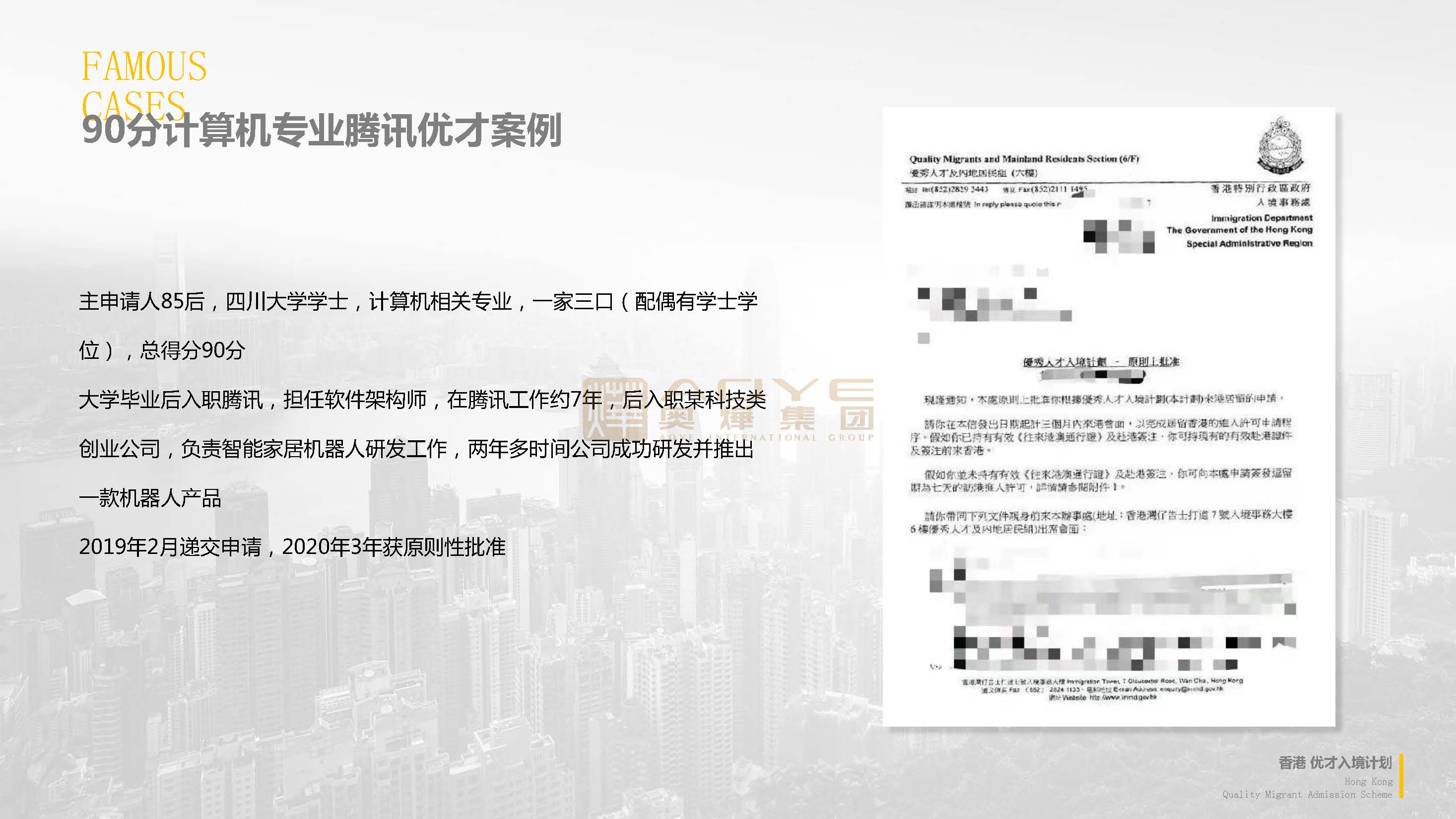 主申請人85后,四川大學學士,計算機相關專業,一家三口(配偶有學士學位),總得分90分大學畢業后入職騰訊,擔任軟件架構師,在騰訊工作約7年,后入職某科技類創業公司,負責智能家居機器人研發工作,兩年多時間公司成功研發并推出一款機器人產品!