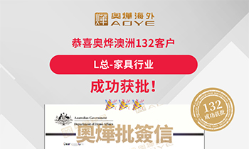 恭喜奧燁澳洲132客戶 機電設備行業H總 喜獲體檢無犯罪通知 恭喜奧燁澳洲132客戶 家具行業L總 成功獲批