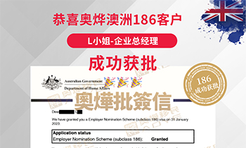 恭喜奧燁澳洲186客戶L小姐 成功獲批 個案背景:L小姐從業于香港某大型企業,擔任部門總經理一職。經親戚(奧燁188A老客戶)轉...