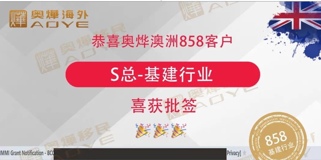 恭喜奧燁澳洲858客戶 能源行業K總 成功獲批 恭喜奧燁澳洲858客戶 高端制造行業F總 喜獲人才識別碼